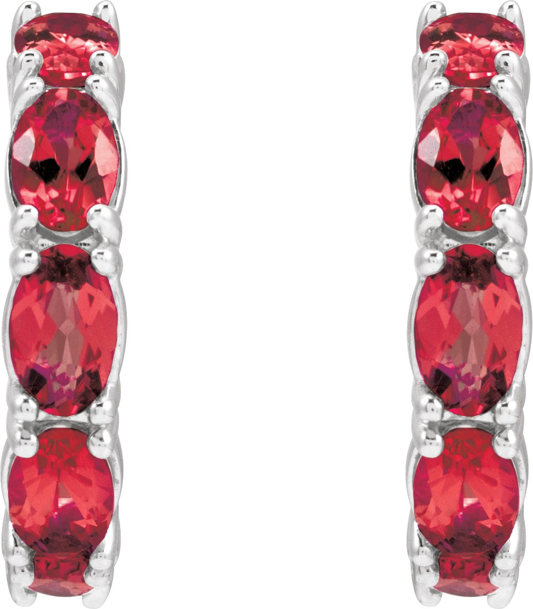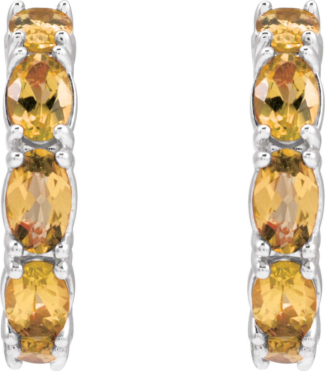 Accented Elongated Hoop Earrings - Natural White Sapphire - EAR70037