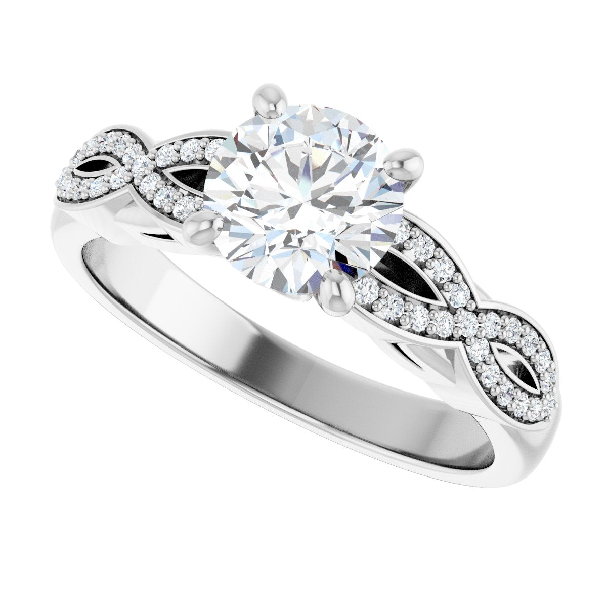 Accented Engagement Ring - Round - 14K White