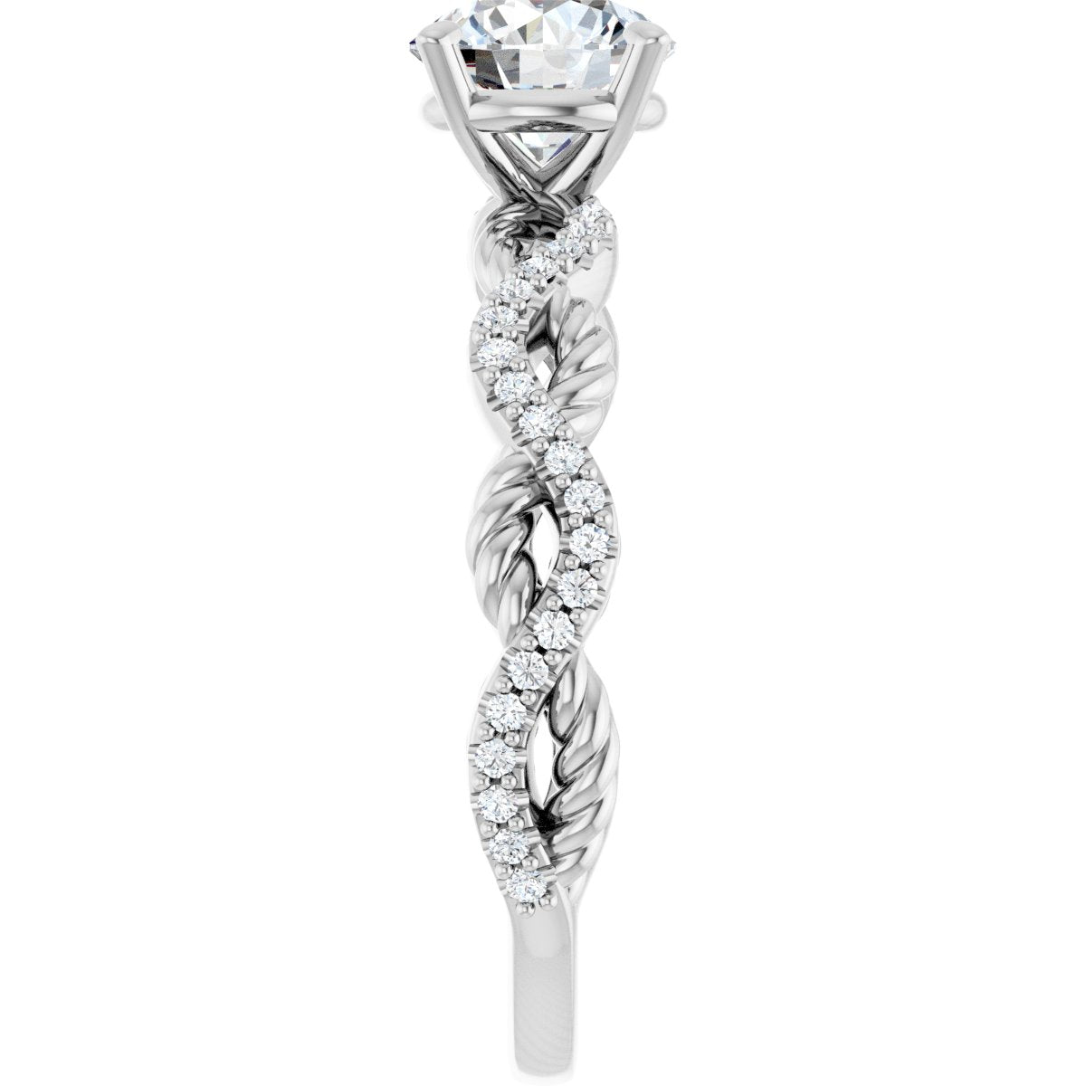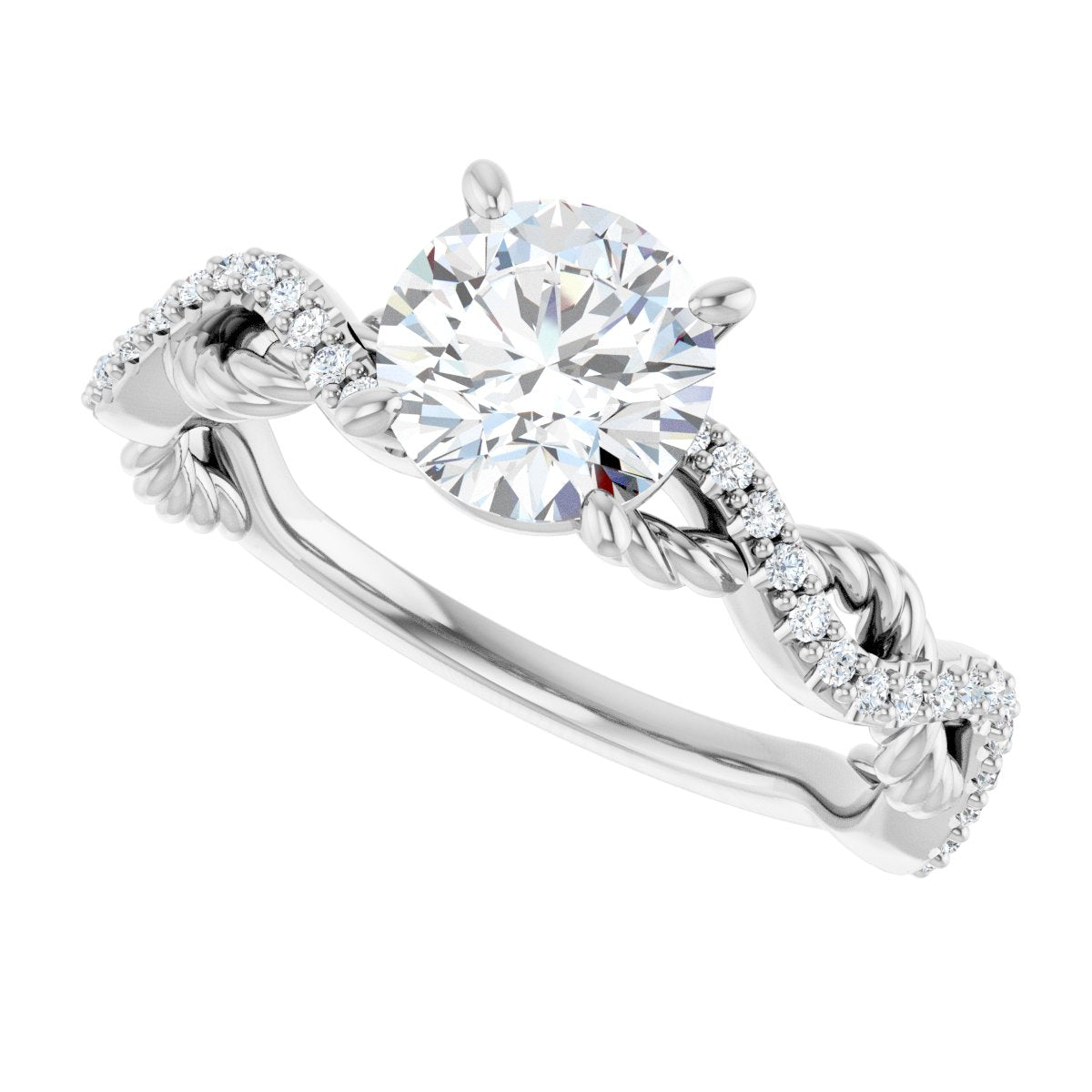 Accented Engagement Ring - Round - 14K White