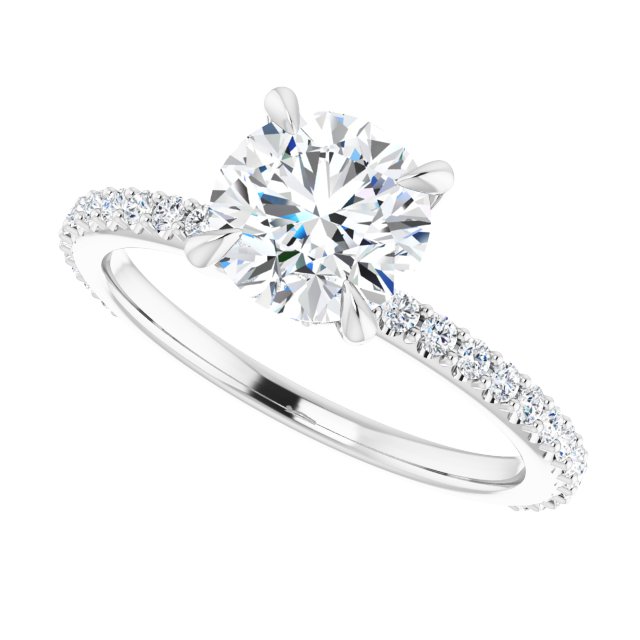Accented Engagement Ring - Round - 14K White
