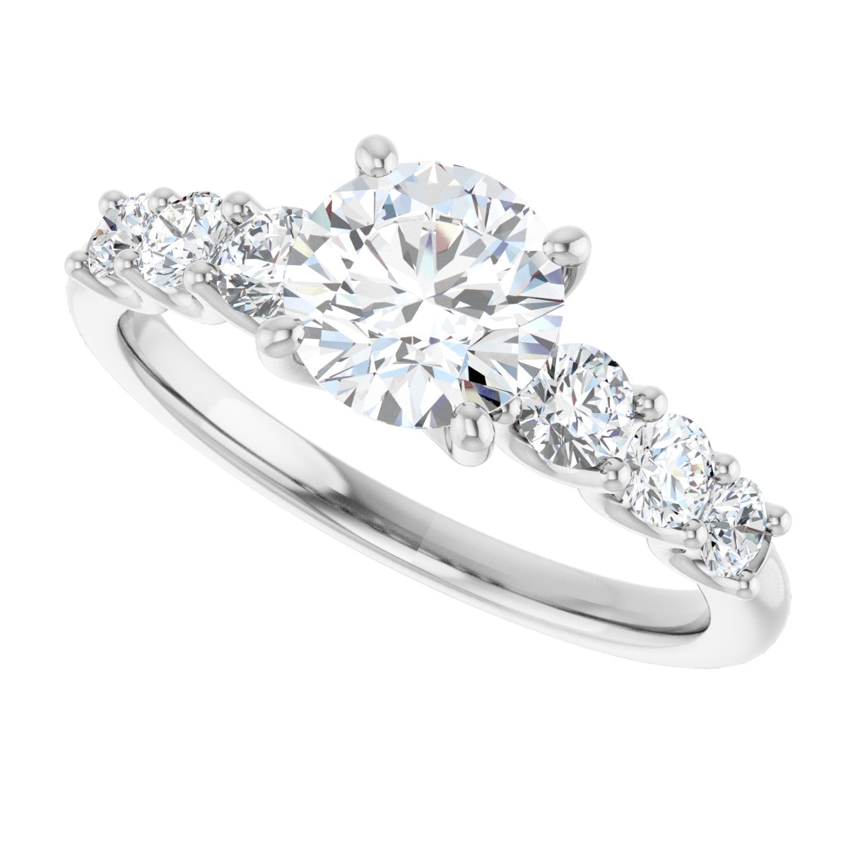 Accented Engagement Ring - Round - 14K White