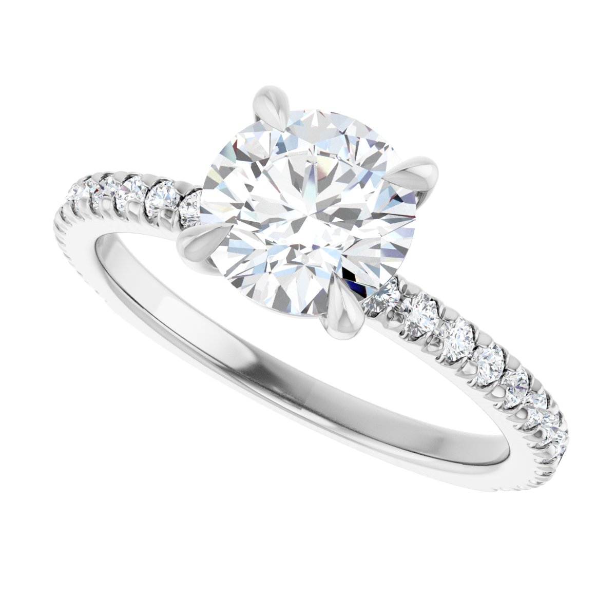 Accented Engagement Ring - Round - 14K White