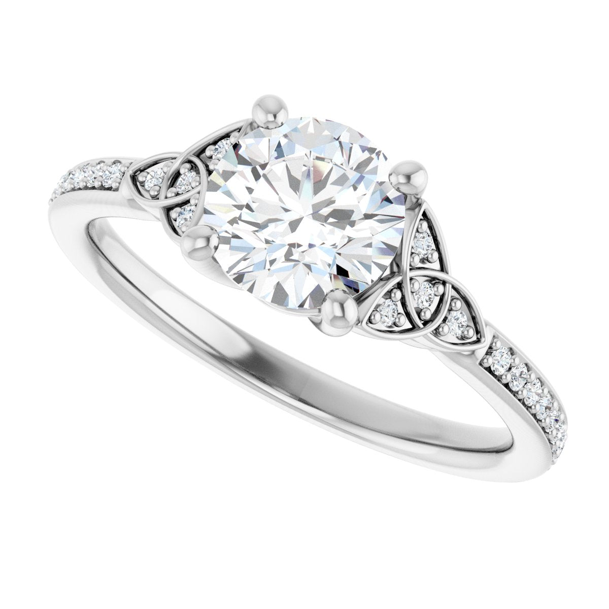 Accented Engagement Ring - Round - 14K White