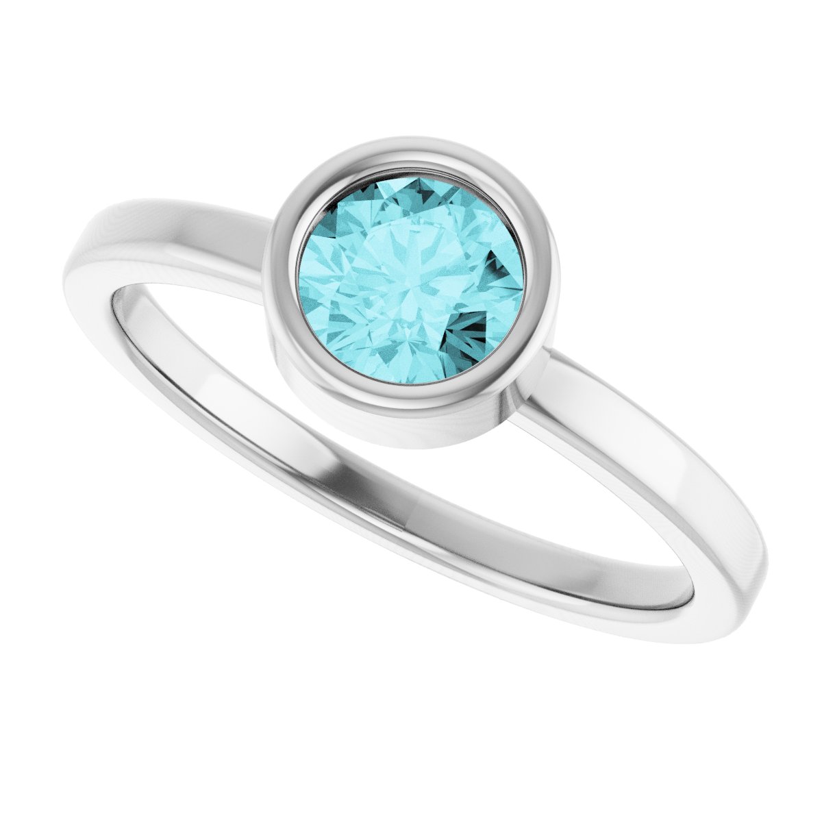 Bezel-Set Solitaire Ring - Natural Blue Zircon