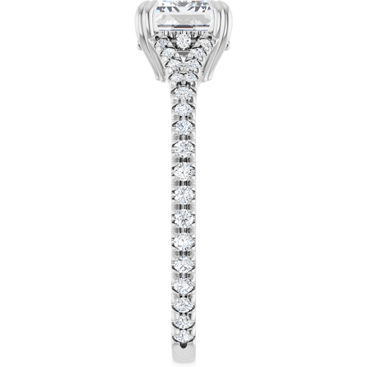 French-Set Accented Engagement Ring or Band - Emerald - 14K White