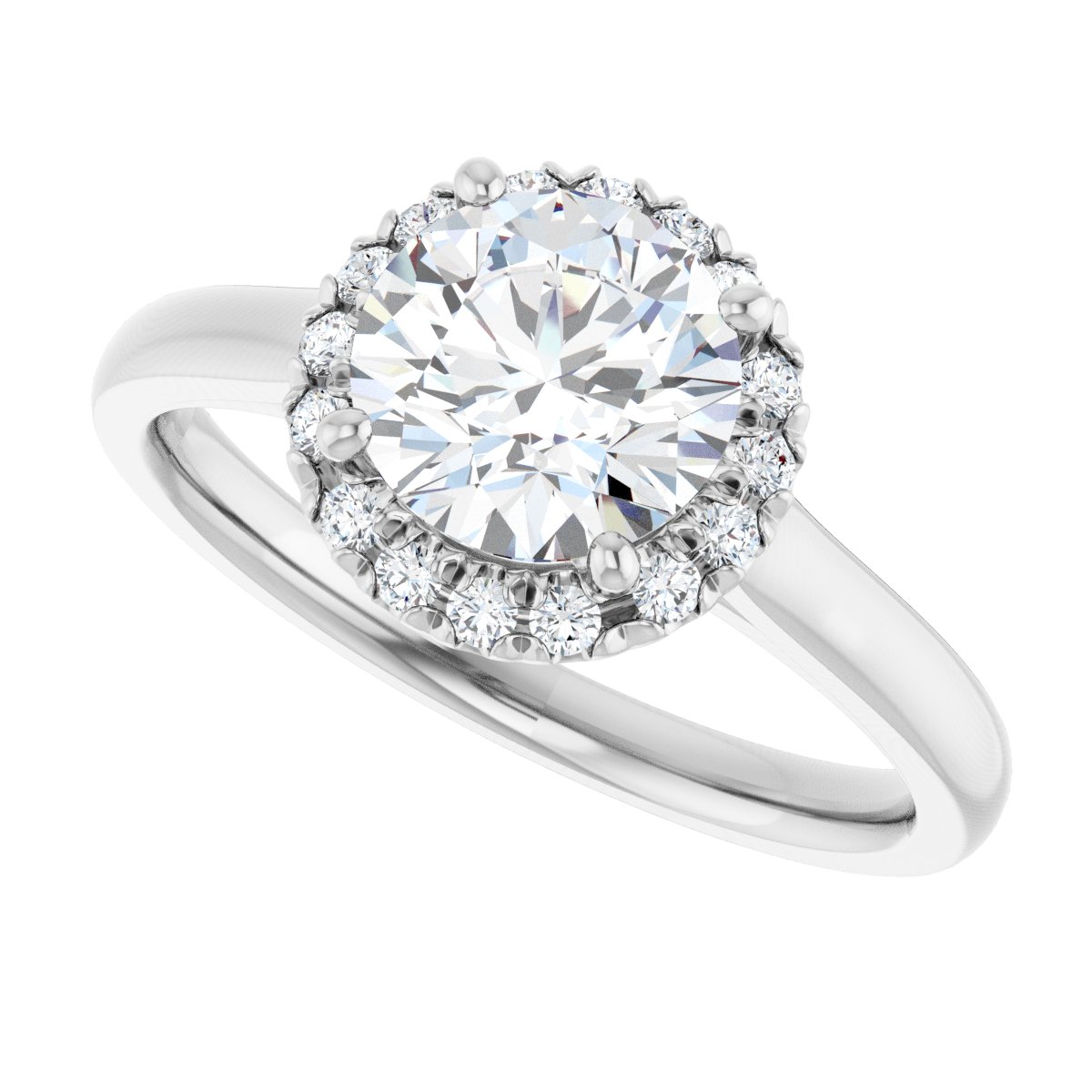 French-Set Halo-Style Engagement Ring - Round - 14K White