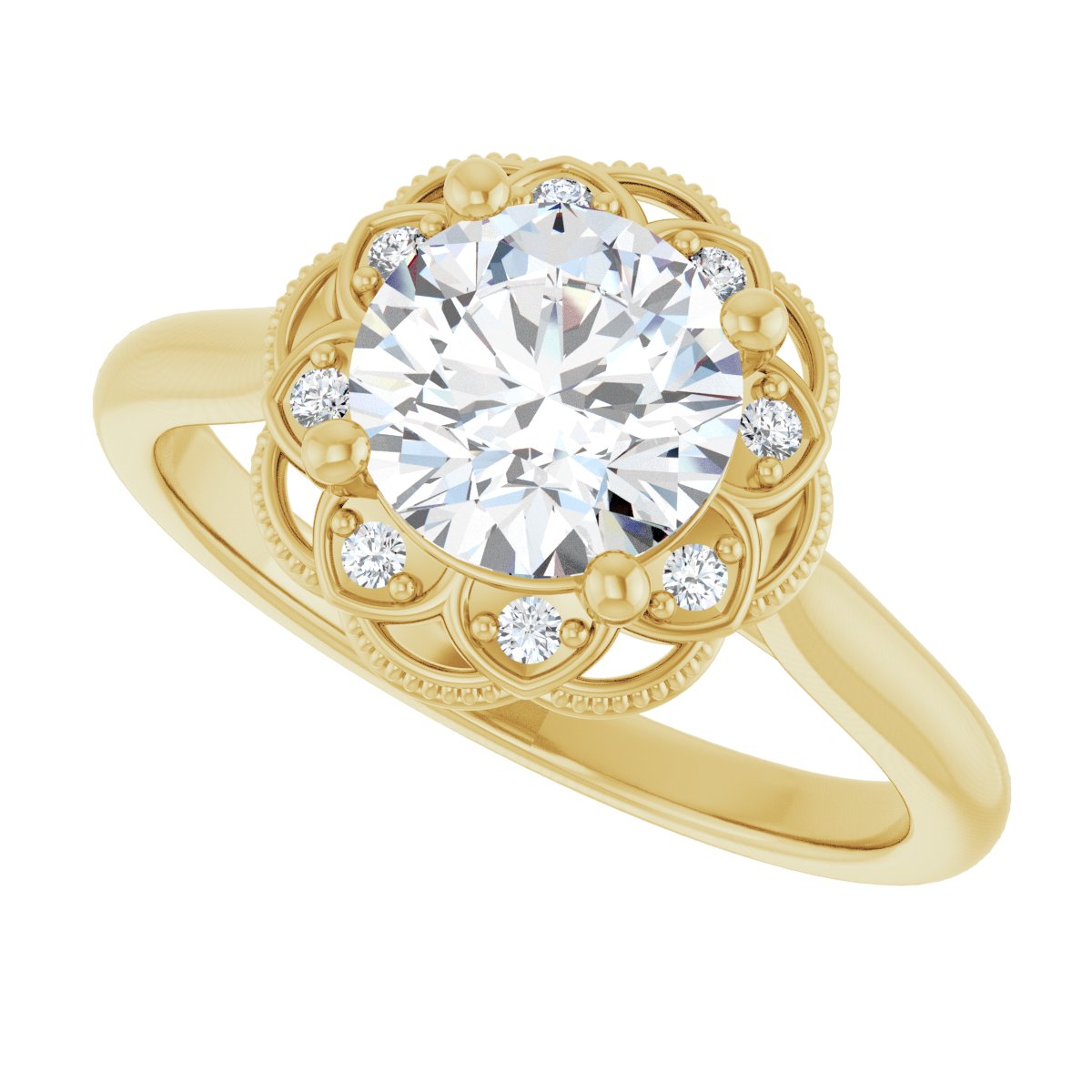Halo-Style Engagement Ring - Round - 14K Yellow
