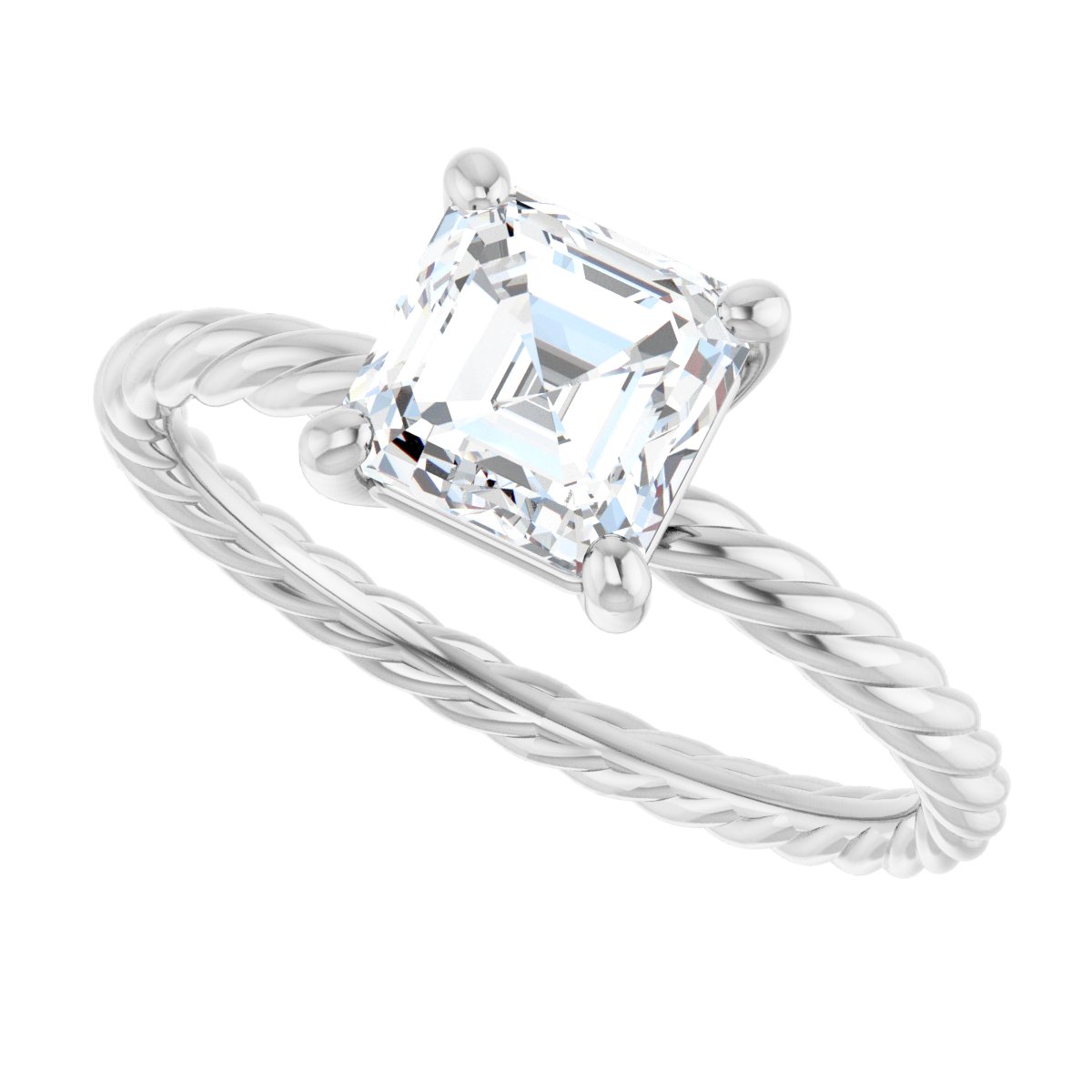 Solitaire Engagement Ring - Asscher - 14K White