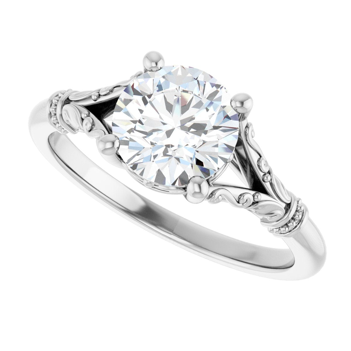 Solitaire Engagement Ring - Round - 14K White