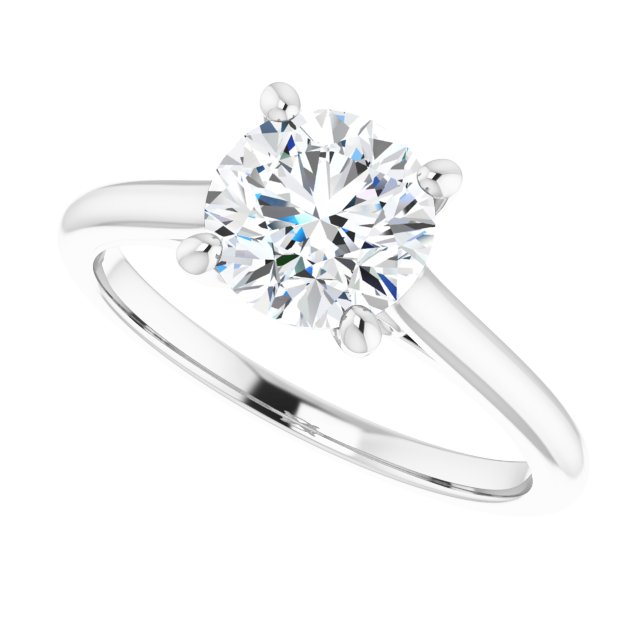 Solitaire Engagement Ring - Round - 14K White