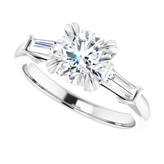 Three-Stone Engagement Ring - Round - 14K White