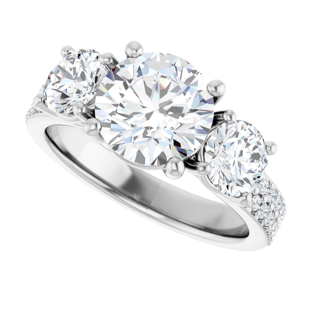 Three-Stone Engagement Ring - Round - 14K White